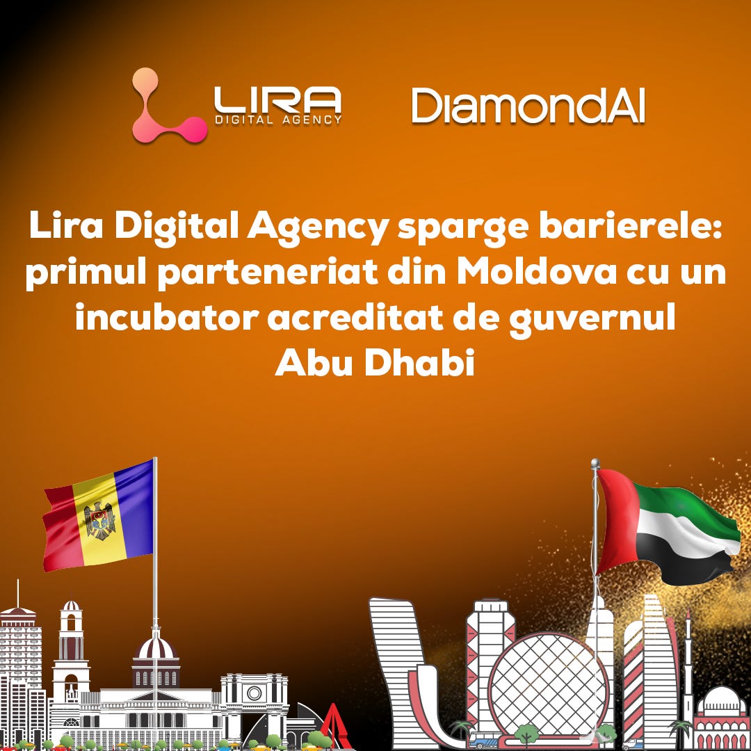 Lira Digital Agency, recent devenită membru AIM, a semnat un acord oficial de parteneriat cu Diamond AI, accelerator privat de afaceri din Abu Dhabi, specializat în inteligență artificială și acreditat de guvernul Emiratelor Arabe Unite. Este o premieră pentru o agenție de marketing digital din Republica Moldova și un pas important în extinderea colaborărilor internaționale în domeniul digital și tehnologic.