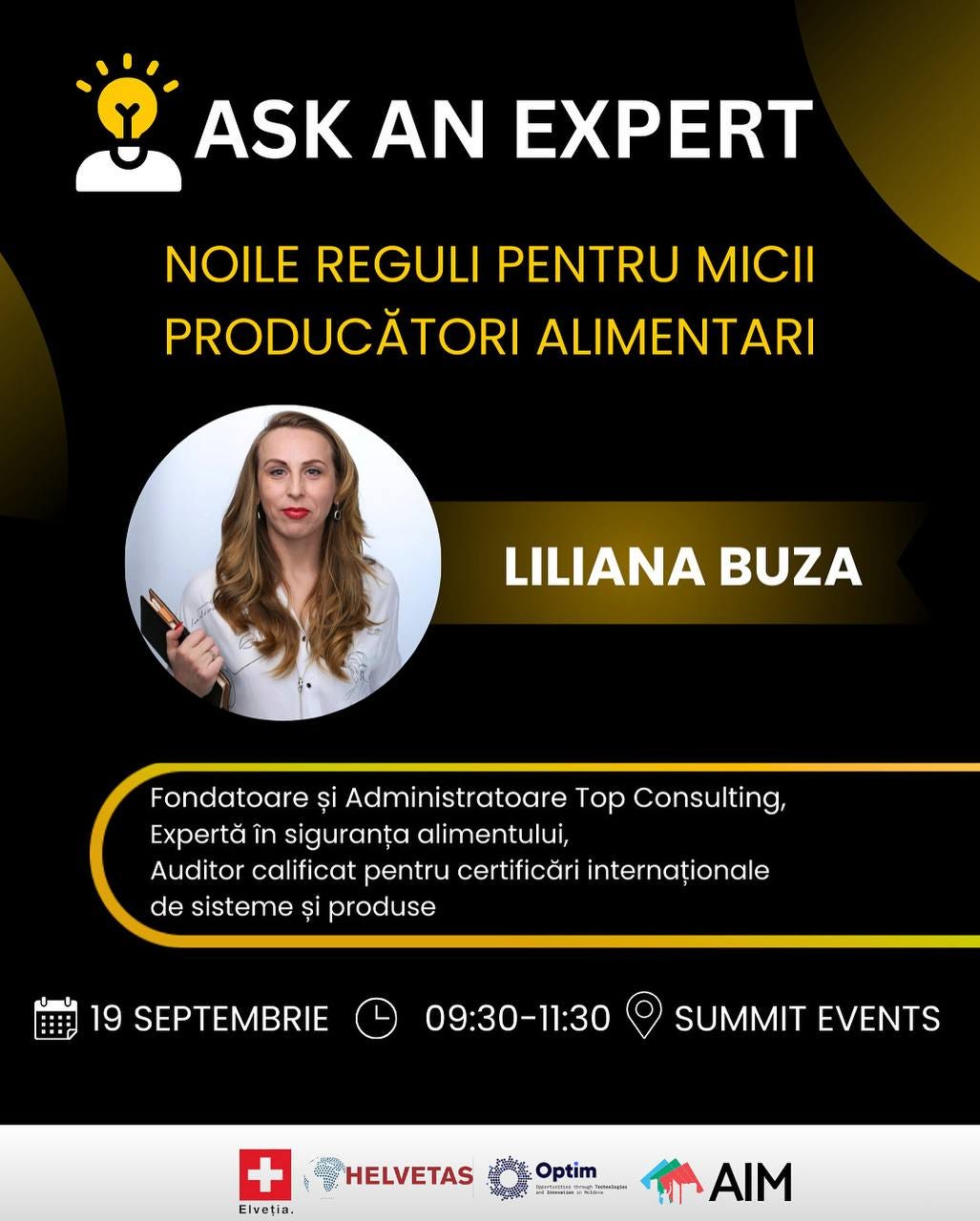 Liliana Buza, Fondatoare și Administratoare Top Consulting, Business Consultantă și Auditor calificat pentru certificări internaționale, cu experiență de peste 25 de ani în domeniul siguranței alimentului și al consultanței de afaceri.