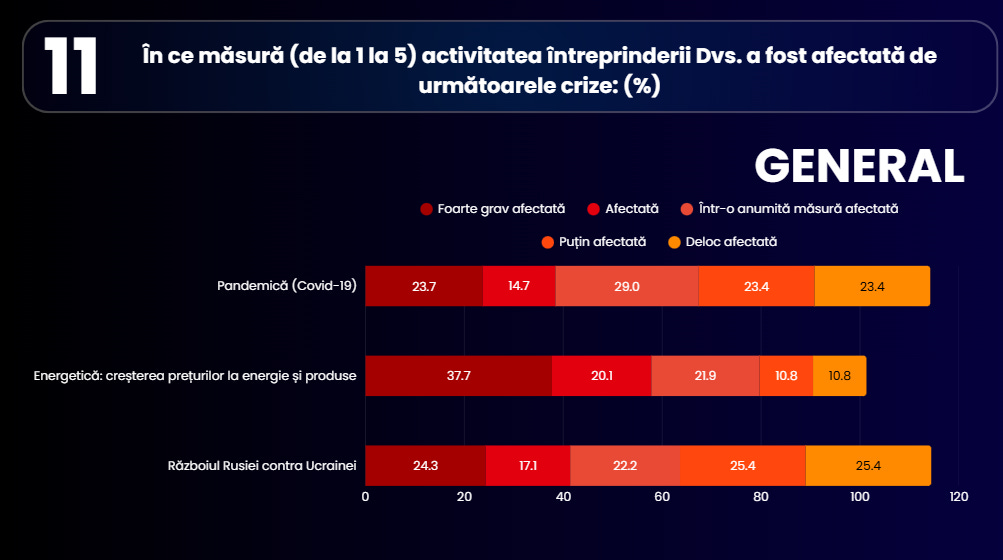 Impactul costurilor: Peste o treime dintre companii au fost grav afectate de creșterea prețurilor la resursele energetice.